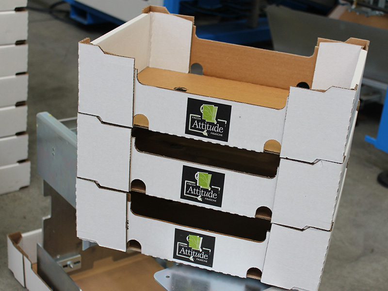 • 盒子類型:?天地蓋箱應用比較廣泛,不僅是果蔬領域,其他工業品和快消品行業都有應用。箱型簡單,通用性好,可以滿足展示和即取即用的使用,也可以保護產品。滿足多種物流條件下的運輸要求。